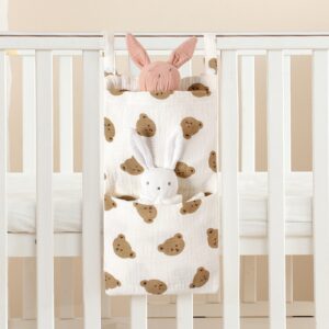 Baby Bedside Hanging Storage Bag, 2 Pockets Organizer for Baby Cribs and Toys, Multifunctional Hanging Pocket Cotton Organizer