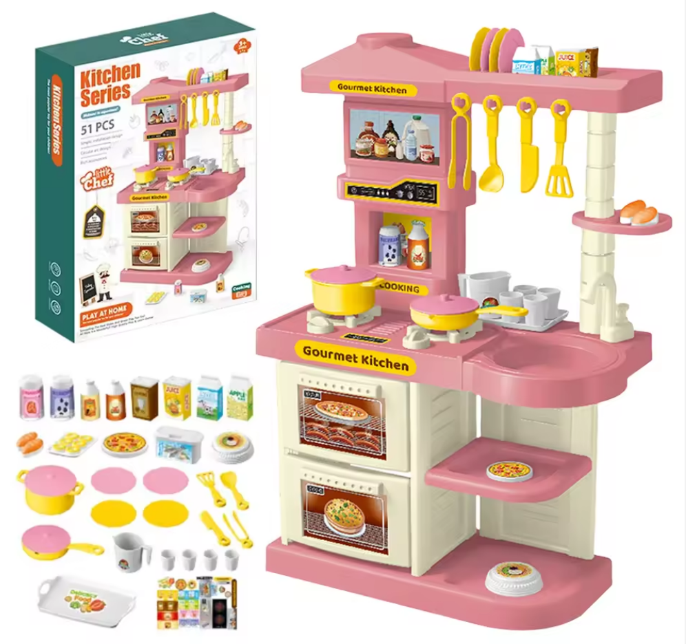 Kids Kitchen Playset Toys – Pretend Food, Pans, Pots & Utensils for Ages 3+
