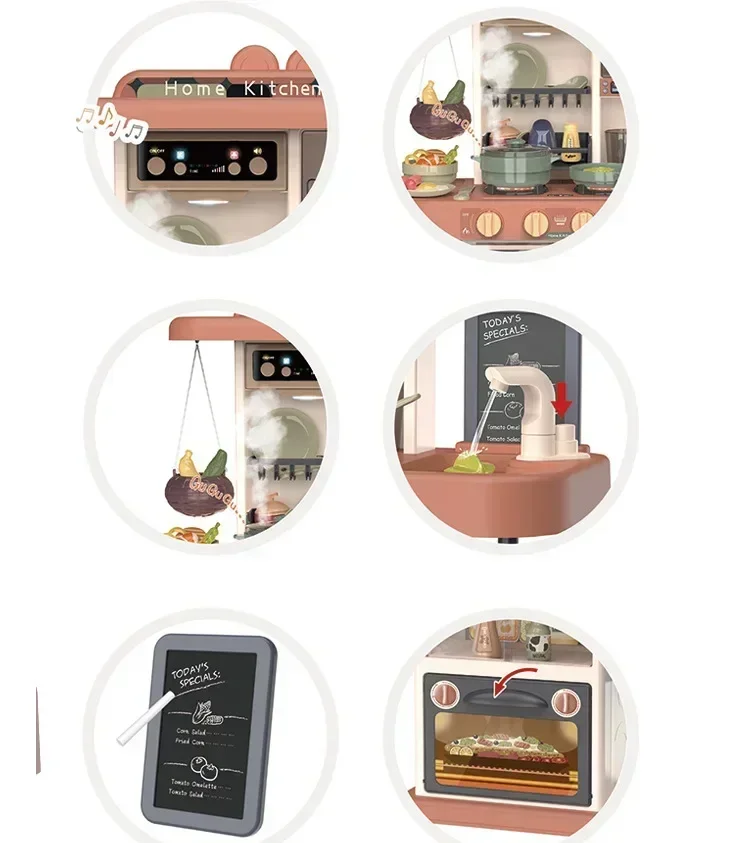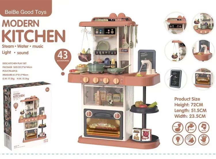 72cm Kids Mini Kitchen Toy Set – Simulation Cookware with Light & Music