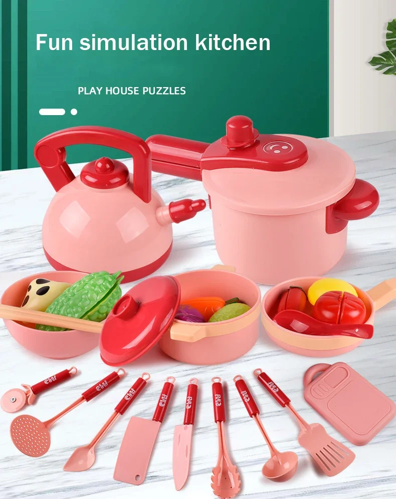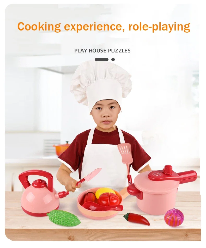 16pcs Kids Pretend Play Fruit & Vegetable Cutting Set – Simulation Kitchen Cookware Toy