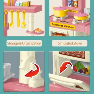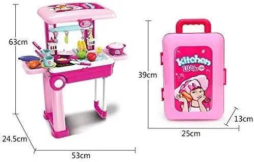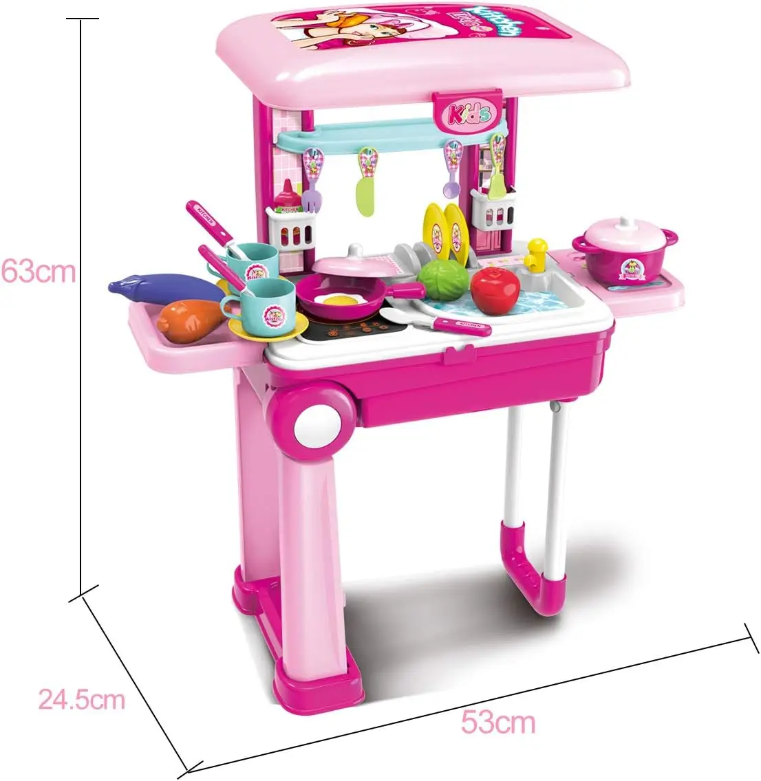 Pretend Play Kitchen Toy for Girls 4-8, 2-in-1 Travel Luggage Turn Into Play Kitchen with Real Lights and Sounds