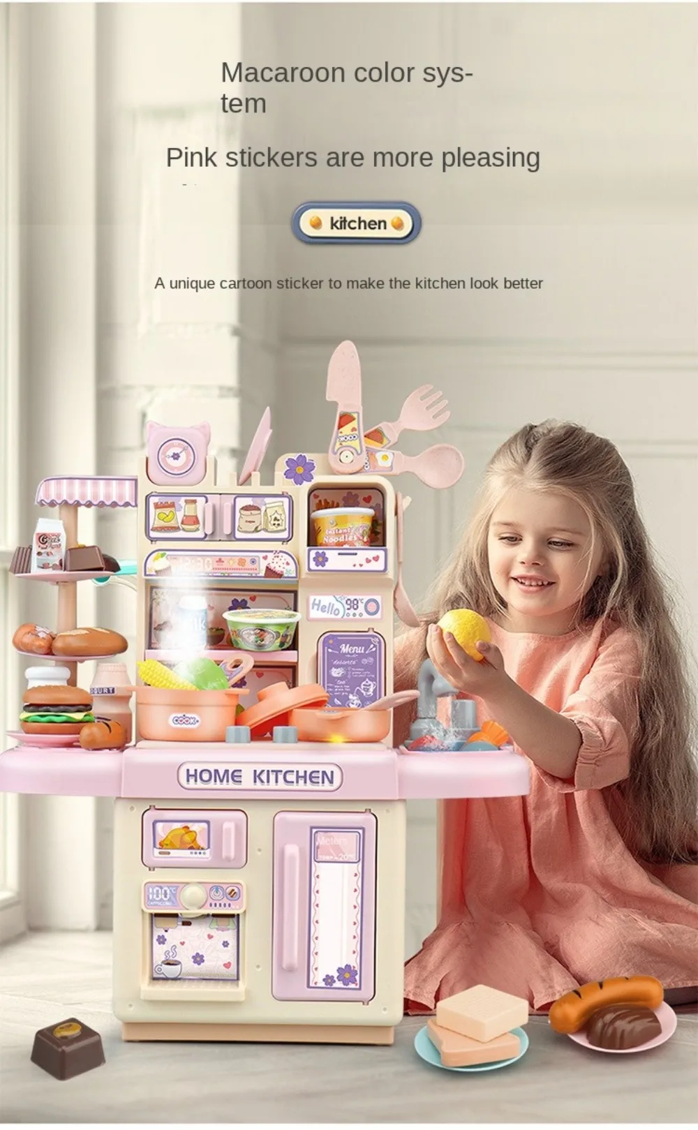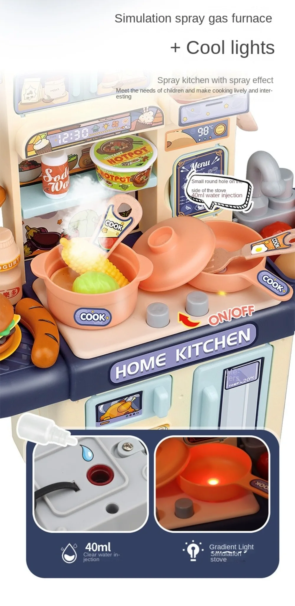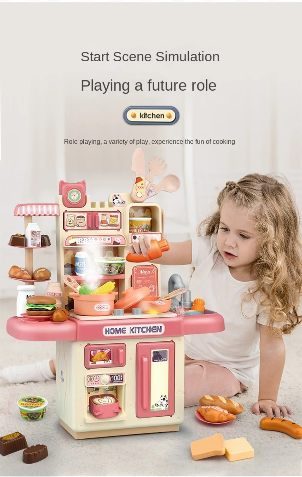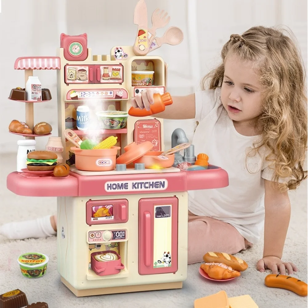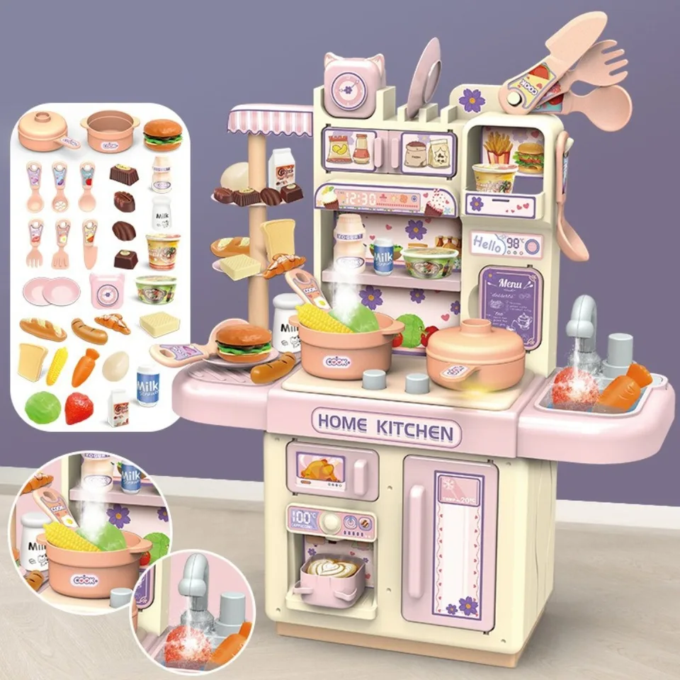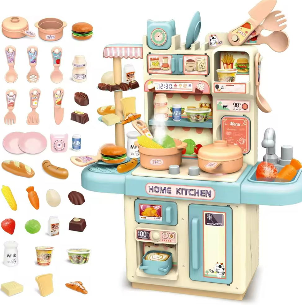 Mini Kids Kitchen Play Set – Simulated Counter with Lights & Spray, DIY Pretend Role Play Toys
