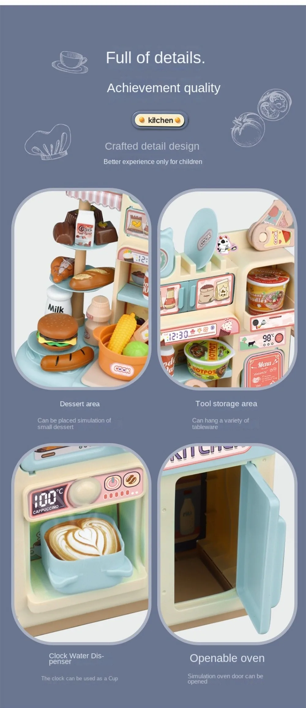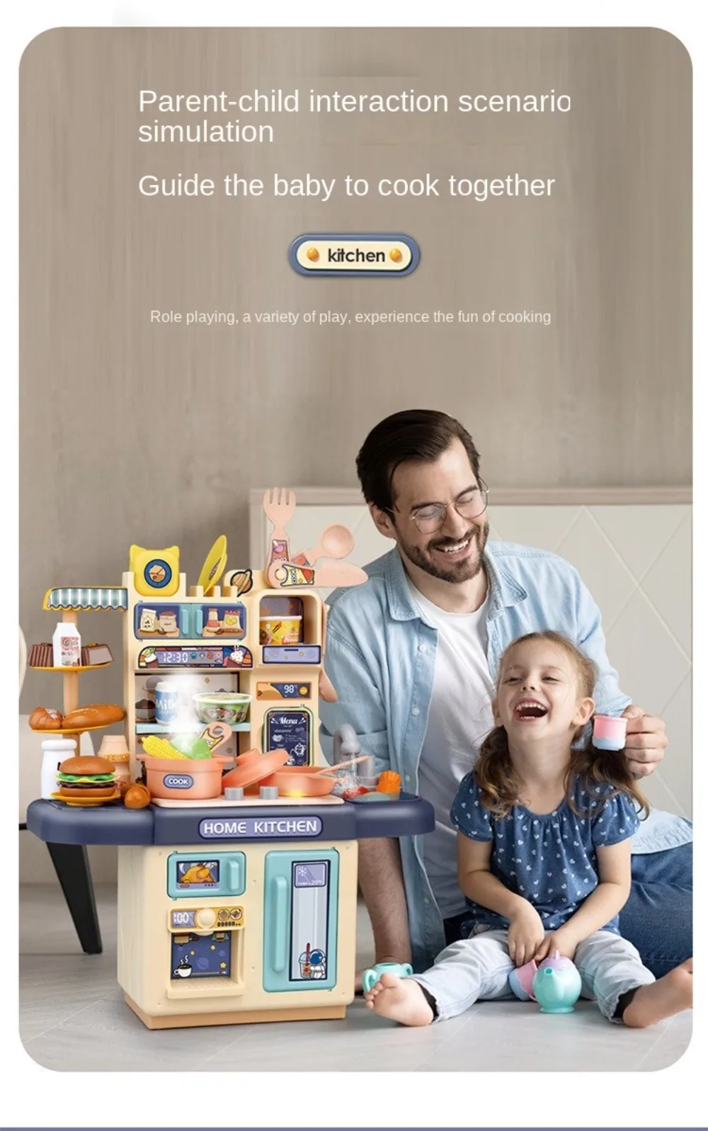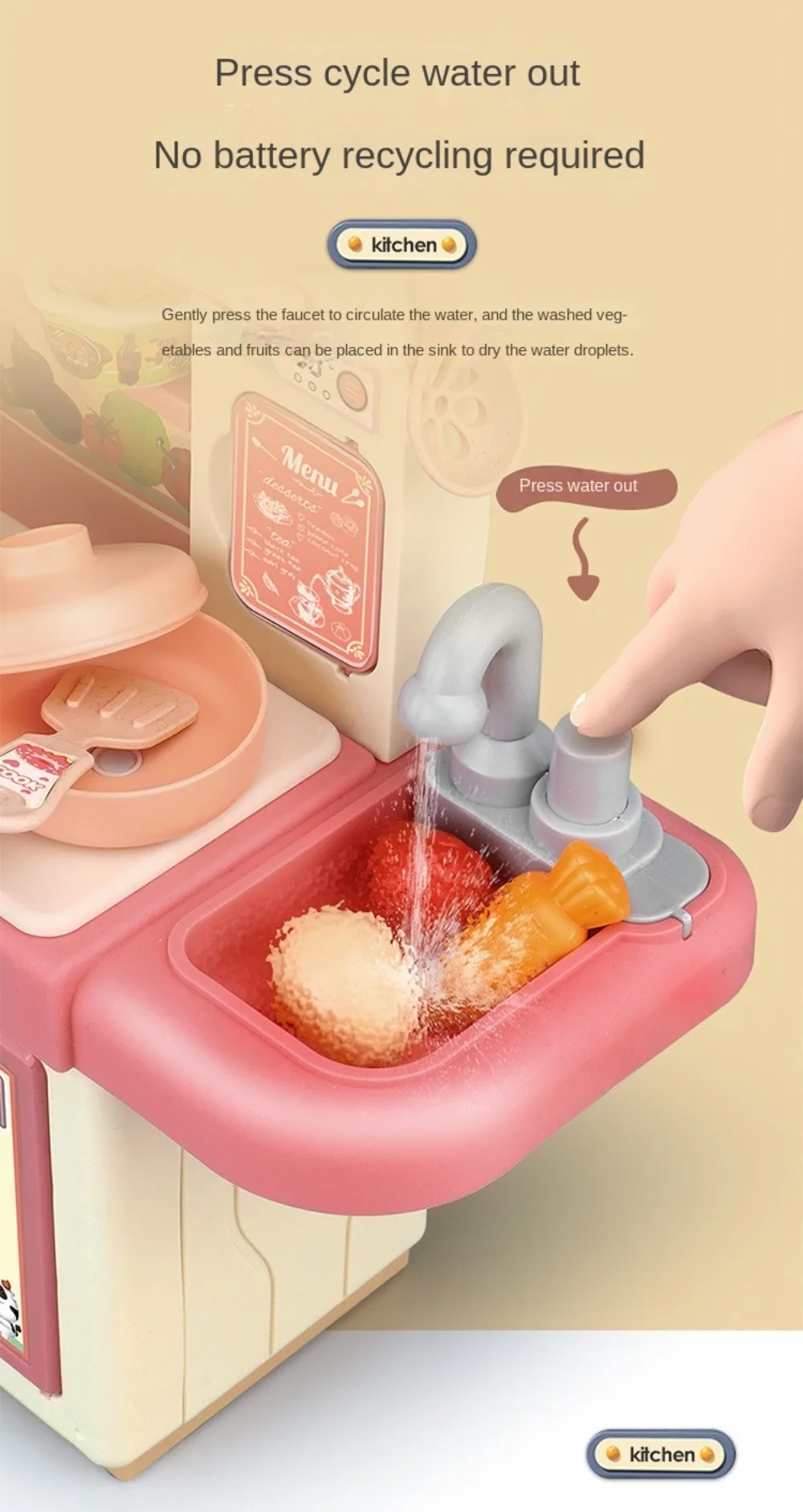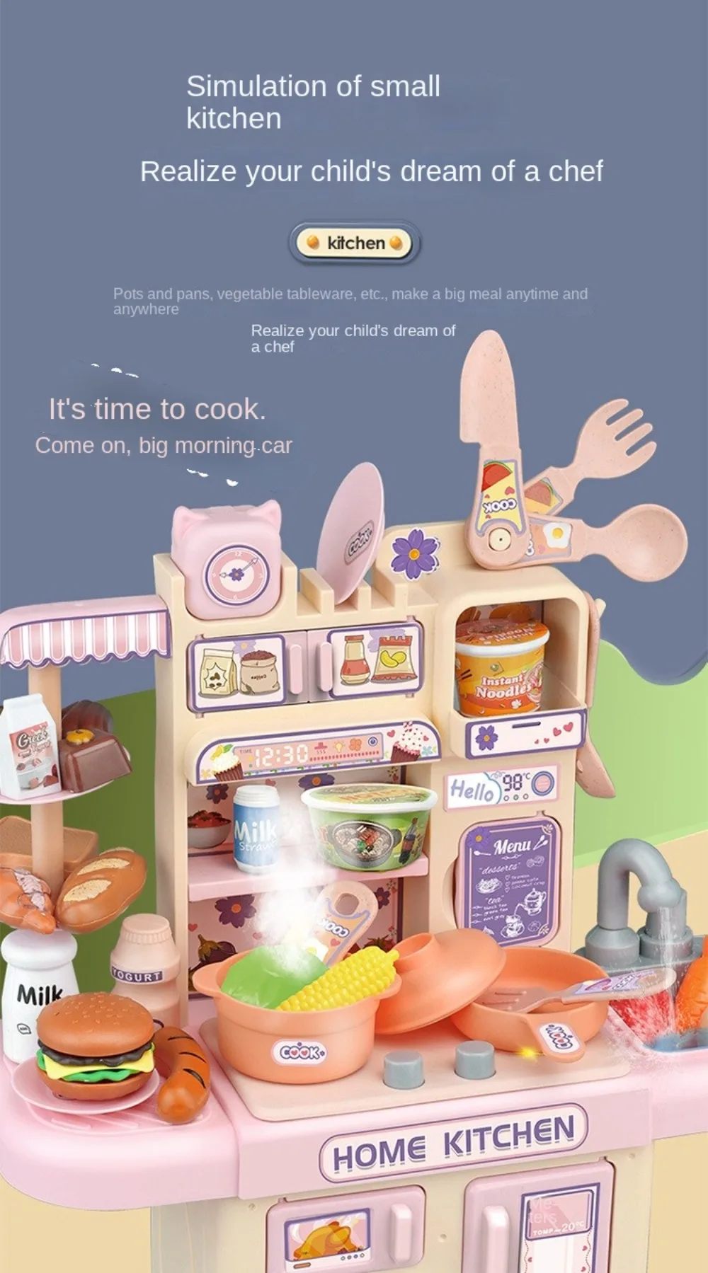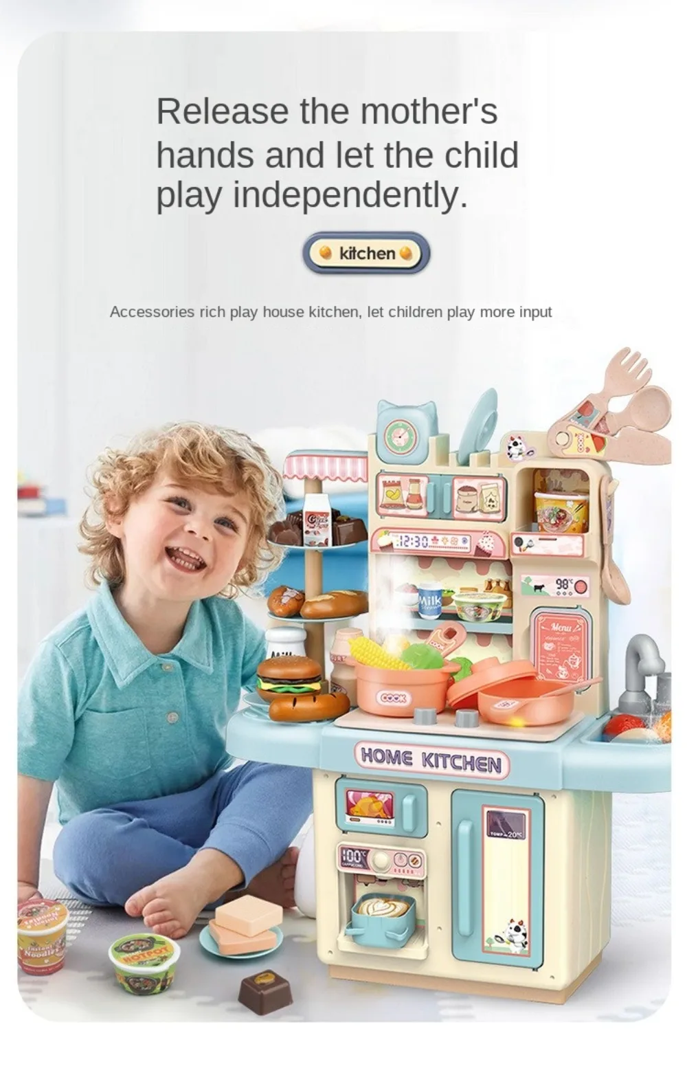 Mini Kids Kitchen Play Set – Simulated Counter with Lights & Spray, DIY Pretend Role Play Toys