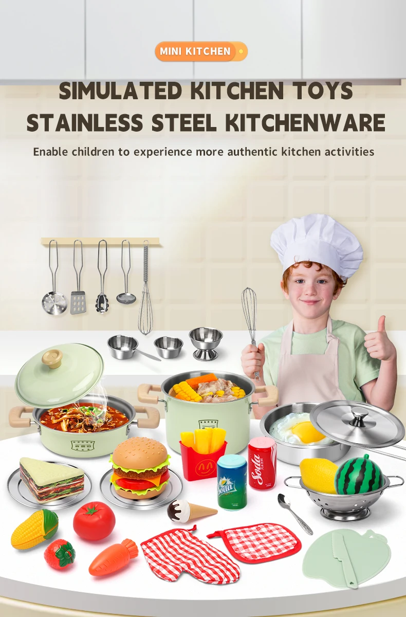 Mini Kids Kitchen Play Set – Cooking Kit with Food & Cookware Gift