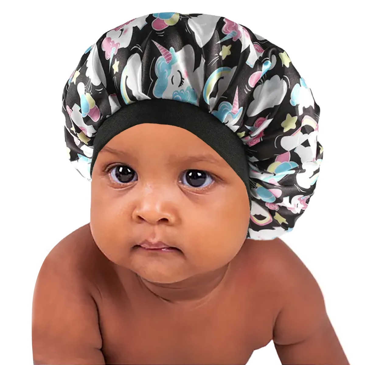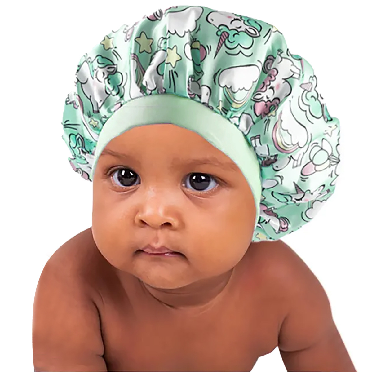 1pc Children’s Printed Narrow Elastic Satin Bonnet, New Model Elastic Printed Comfortable Sleep Hat