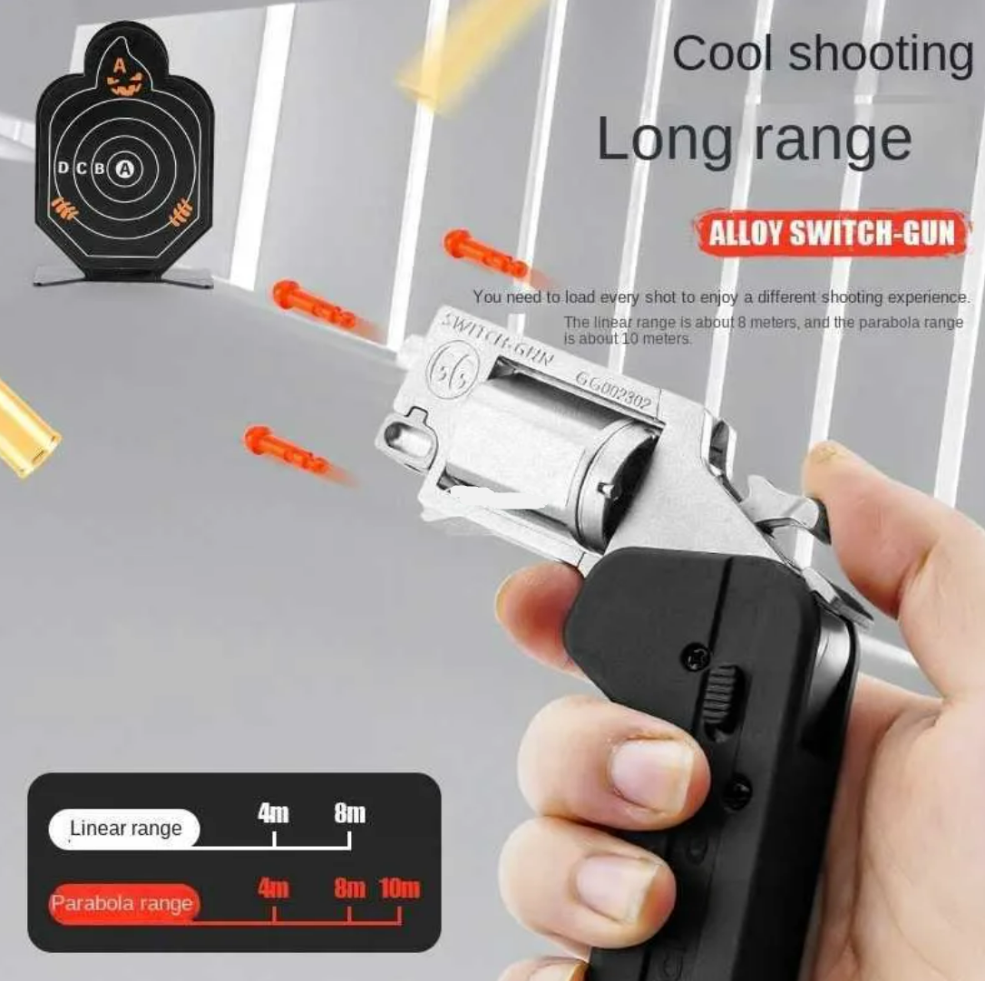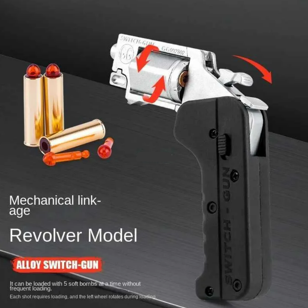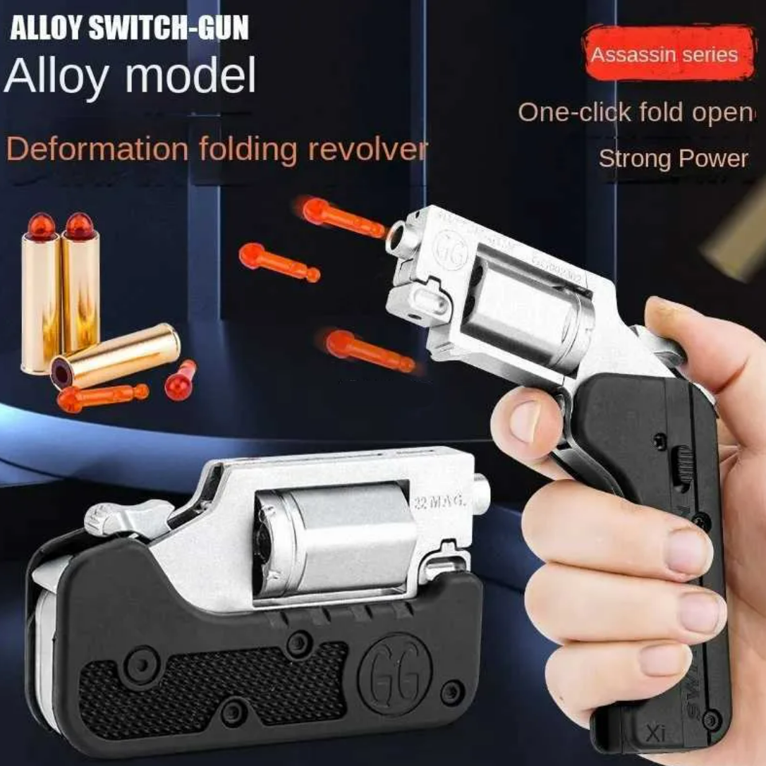 Alloy Folding Revolver Toy Gun – Soft Bullet Firing with Safety Features
