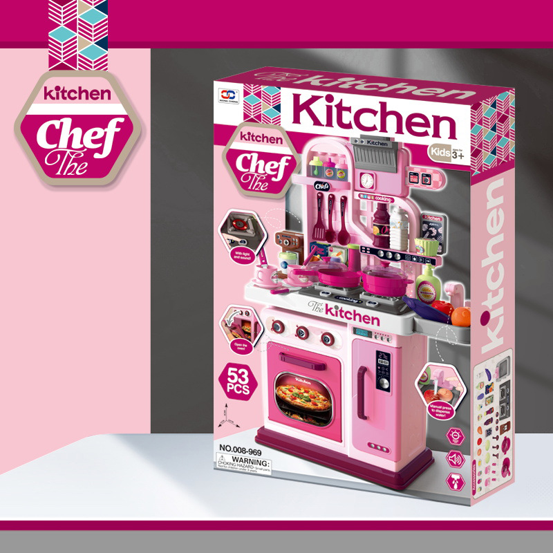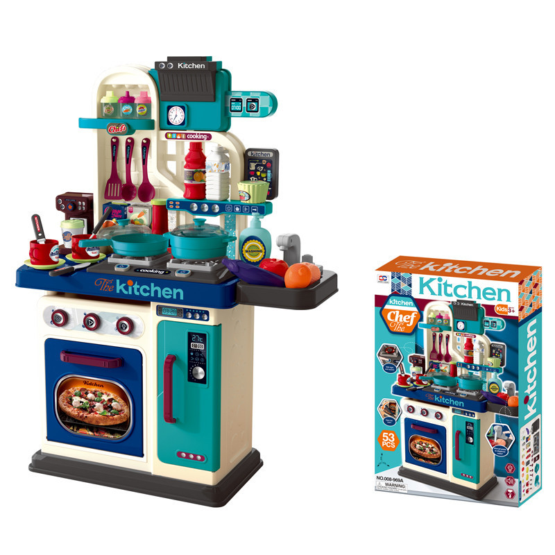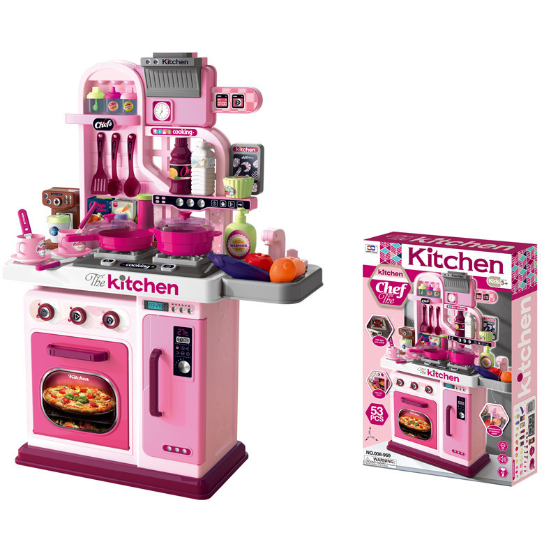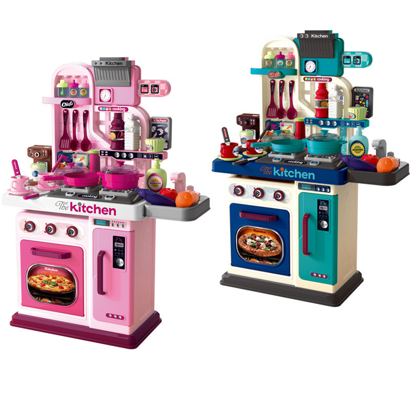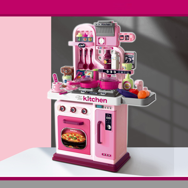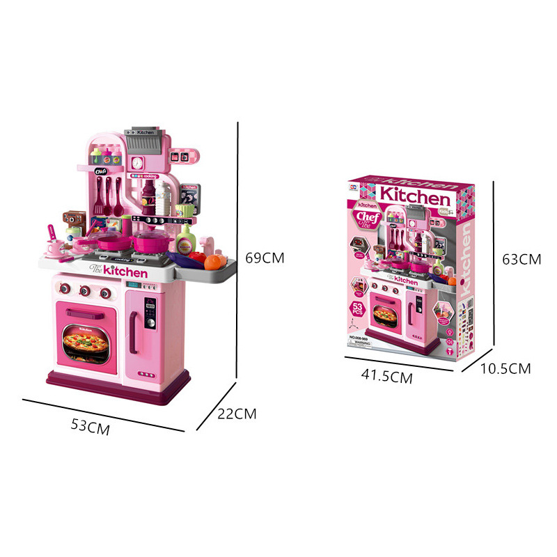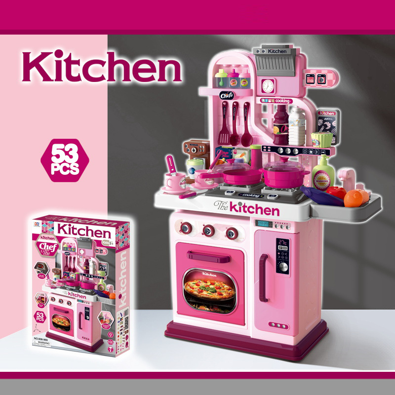 69cm Simulation Girl Role Play Preschool Food Cooking Toys 53PCS Plastic Kids Kitchen Set with Rich Accessories
