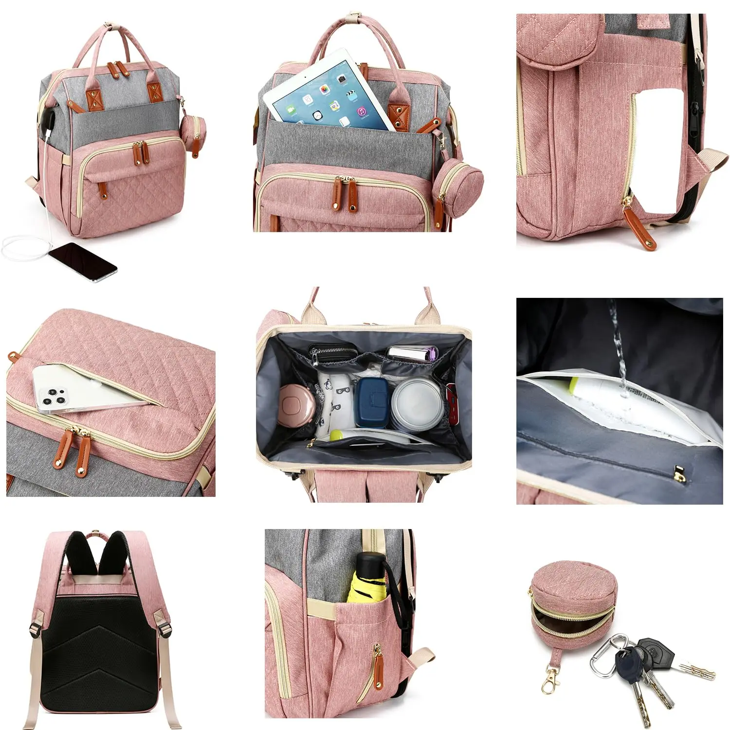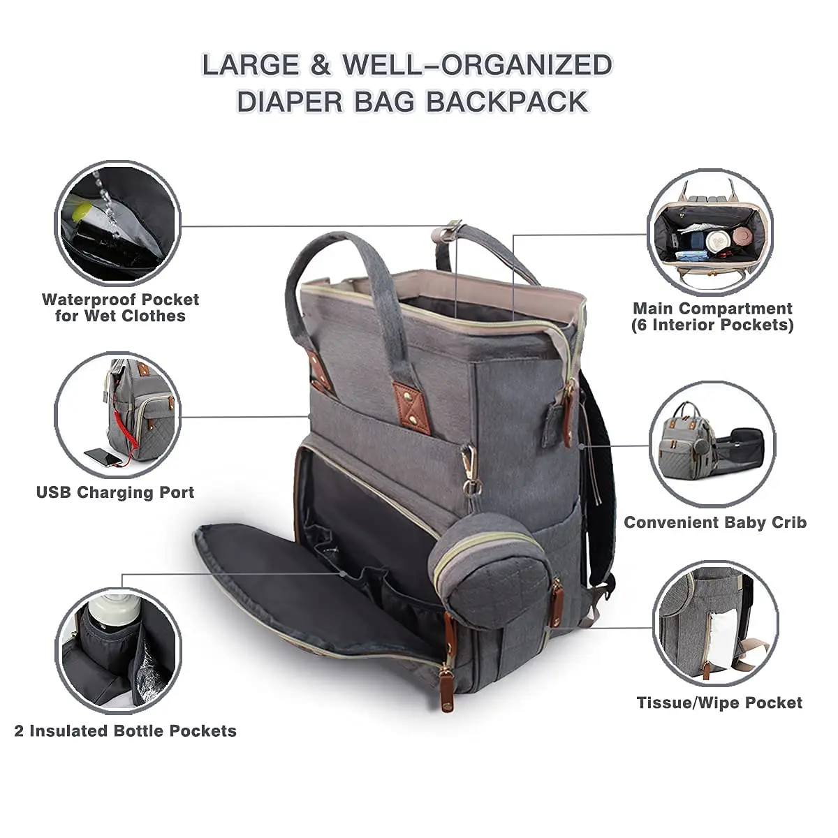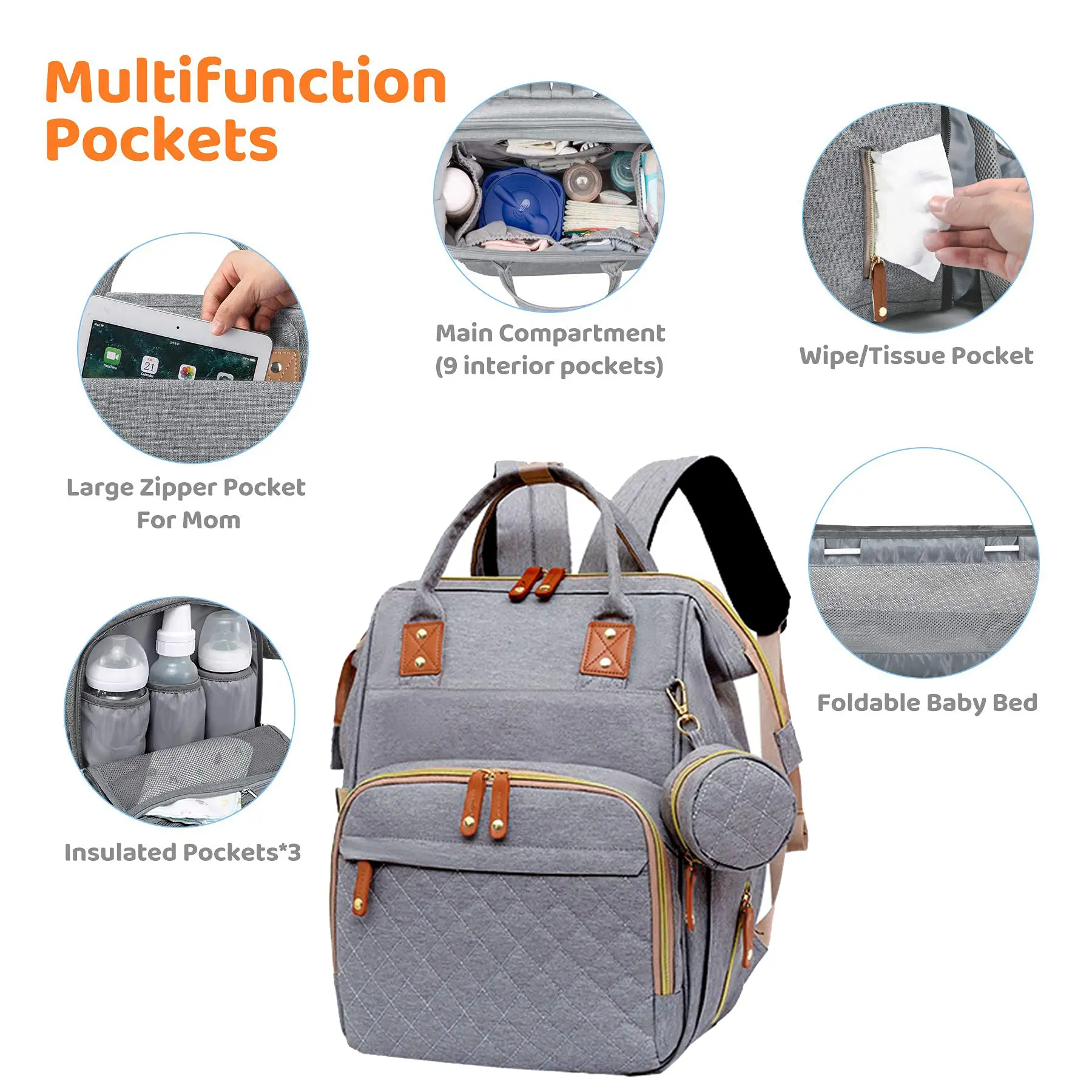 Baby Diaper Backpack with Changing Station, Multi-functional Waterproof Baby Bag for Mom and Dad, Stylish Travel Baby Backpack