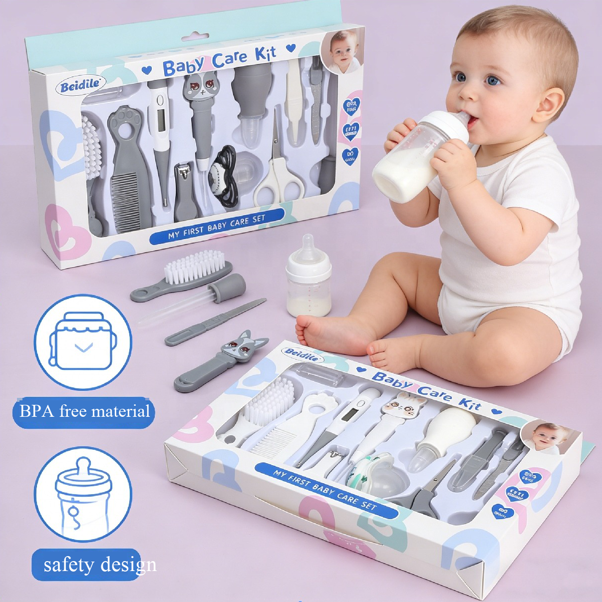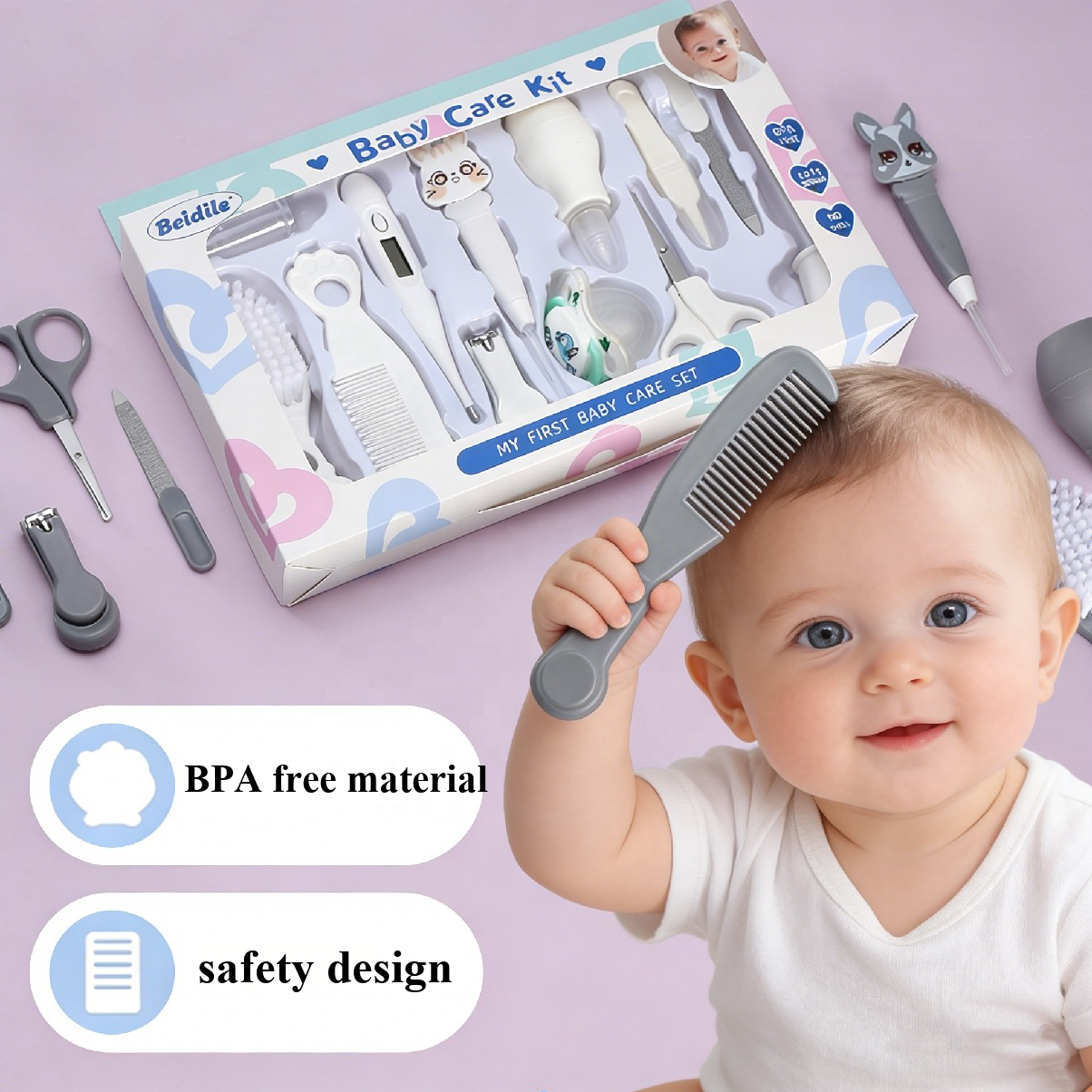 Baby Healthcare & Grooming Kit – Hair Brush, Nail Clipper, Thermometer Included