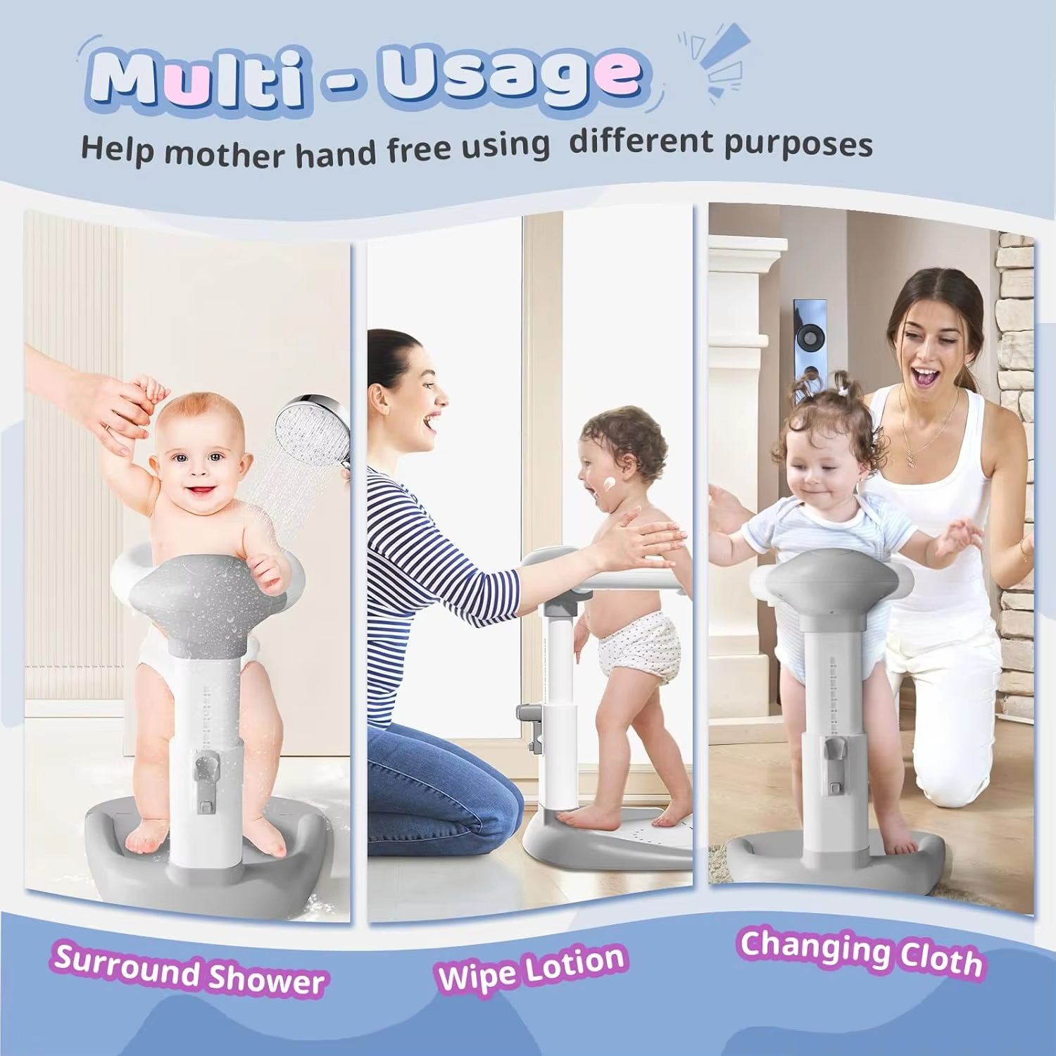 Baby Shower Stand, Adjustable Height Baby Shower Standing Support with Anti-Slip Base, Toddler Stand up for 6+ Months
