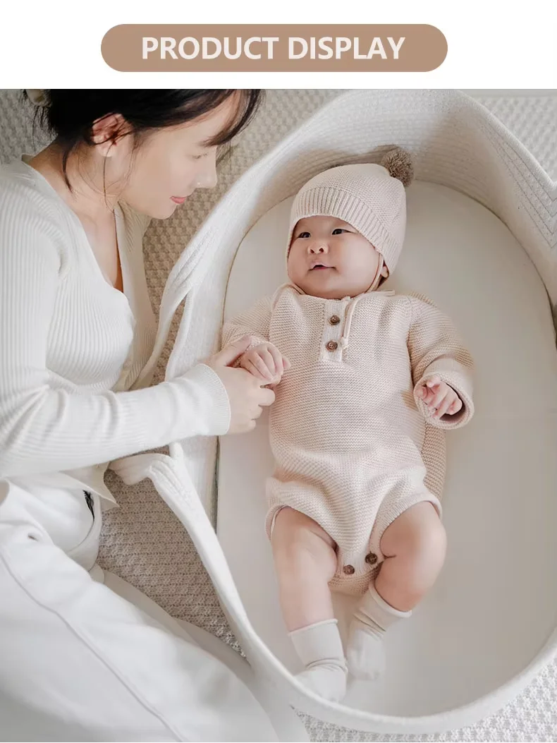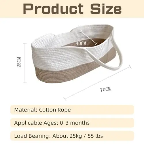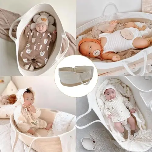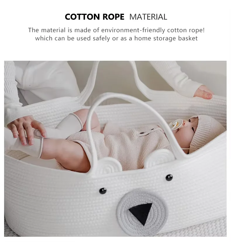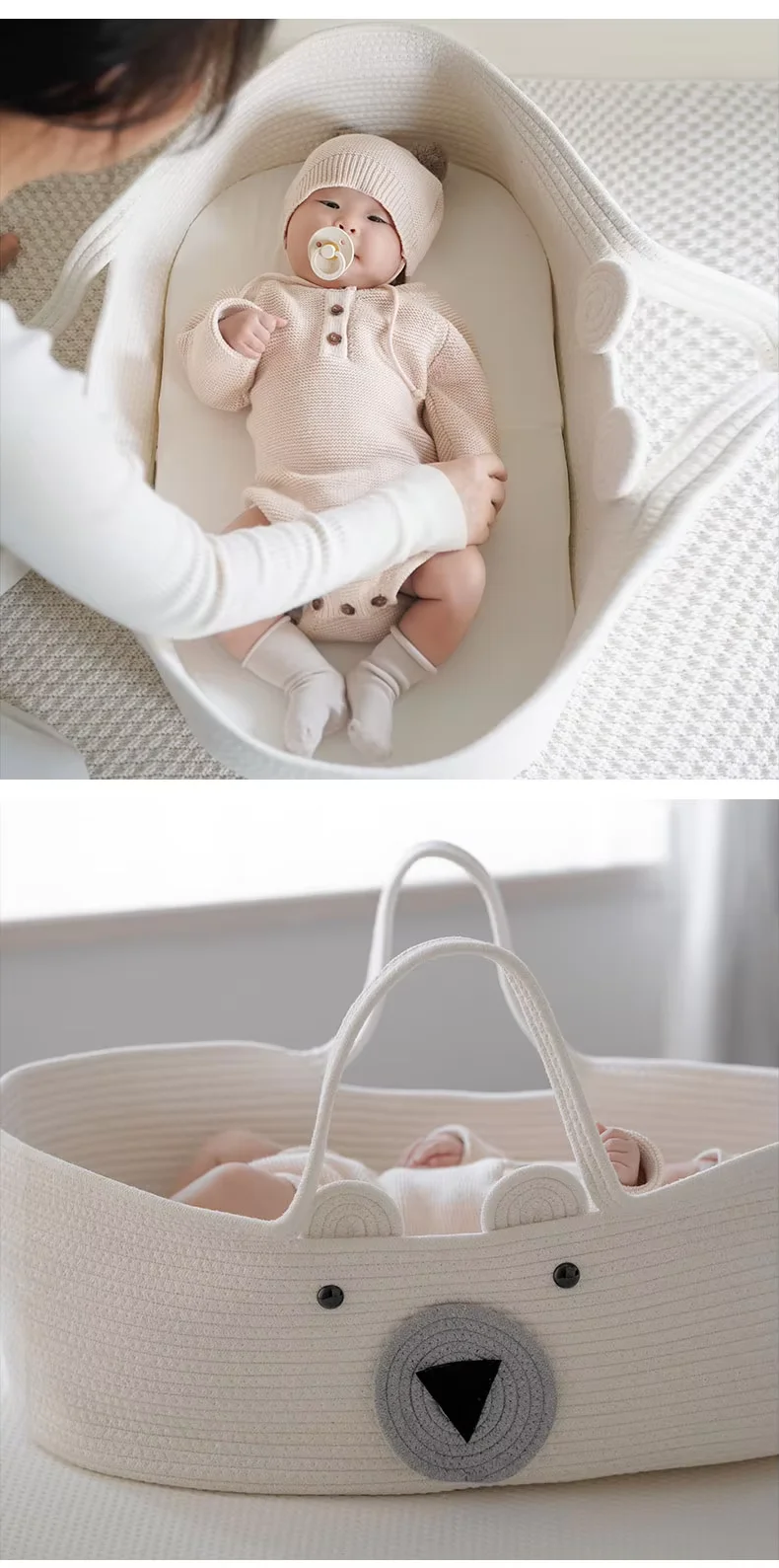 Baby Woven Cotton Rope Moses Changing Basket, Portable Newborn Moses Basket, Cotton Rope Infant Nest Bed