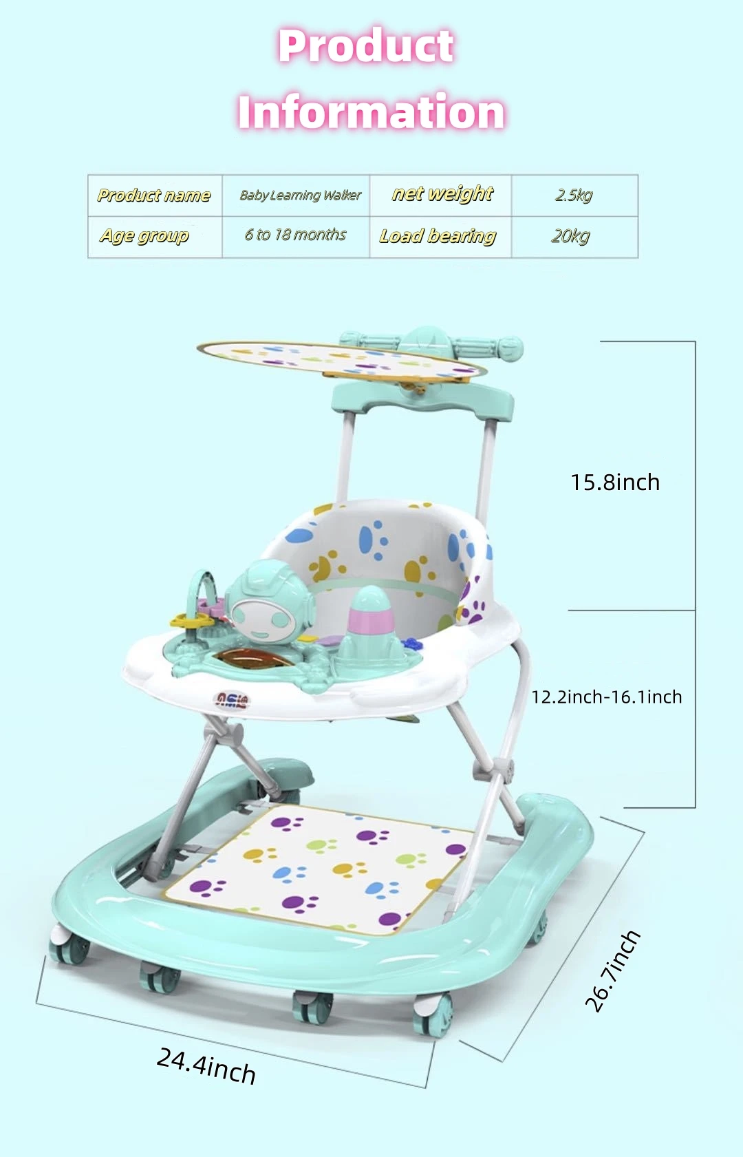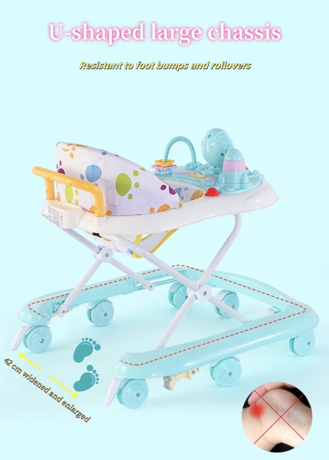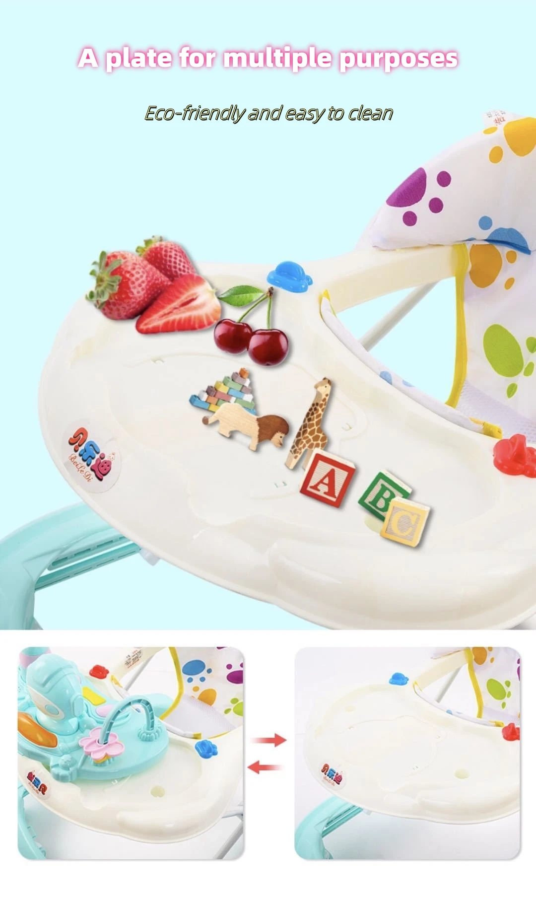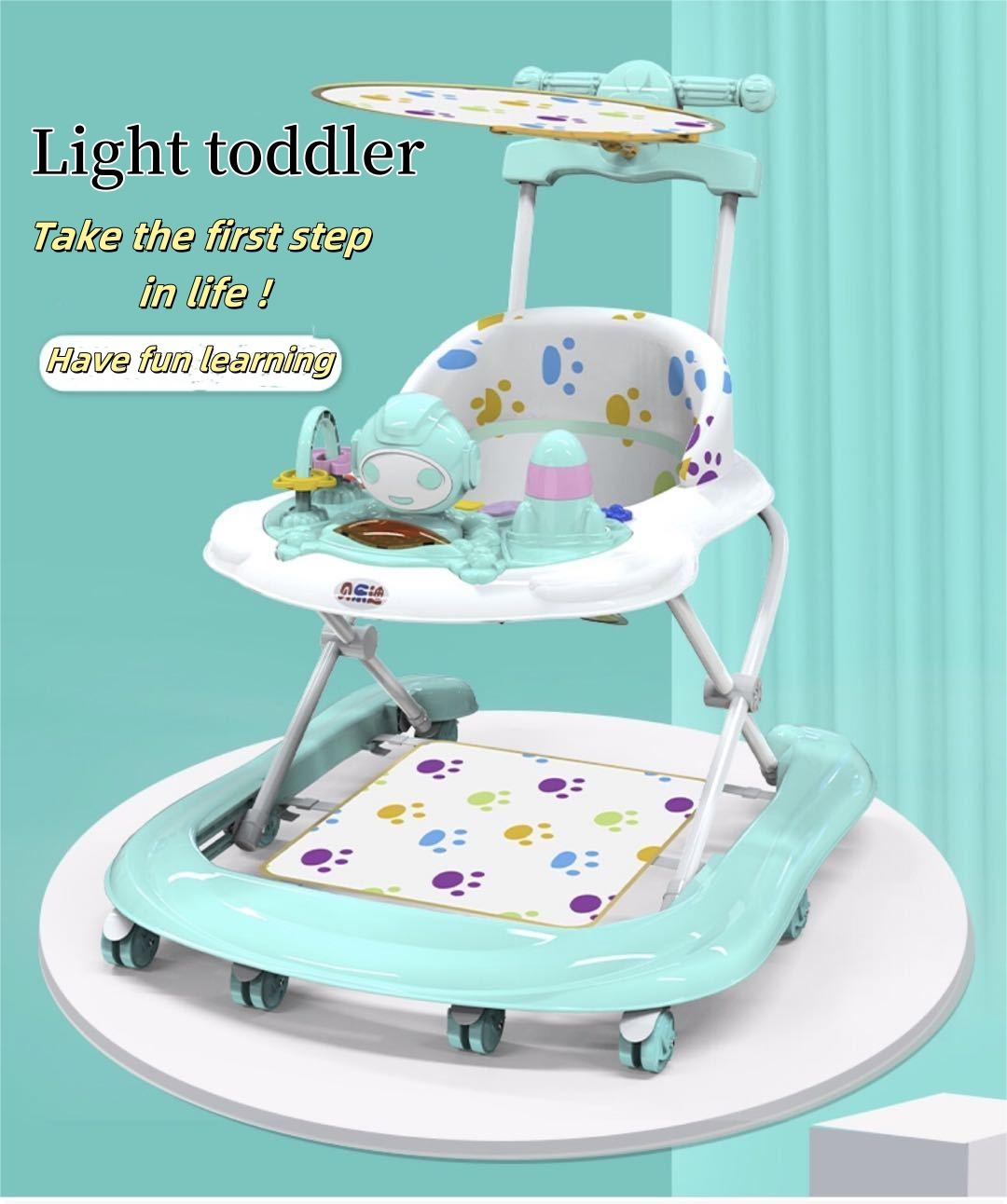 Cartoon Outdoor Baby Activity Walker, 3-in-1 Walking Toy Cart