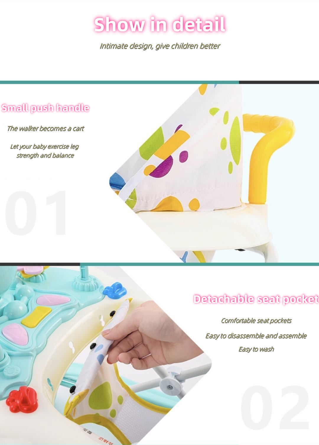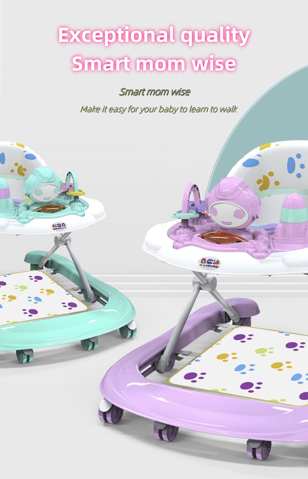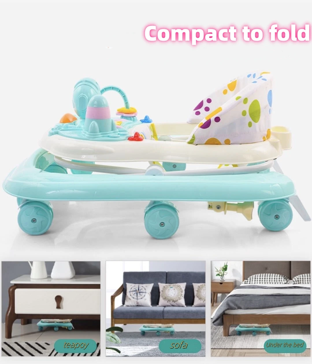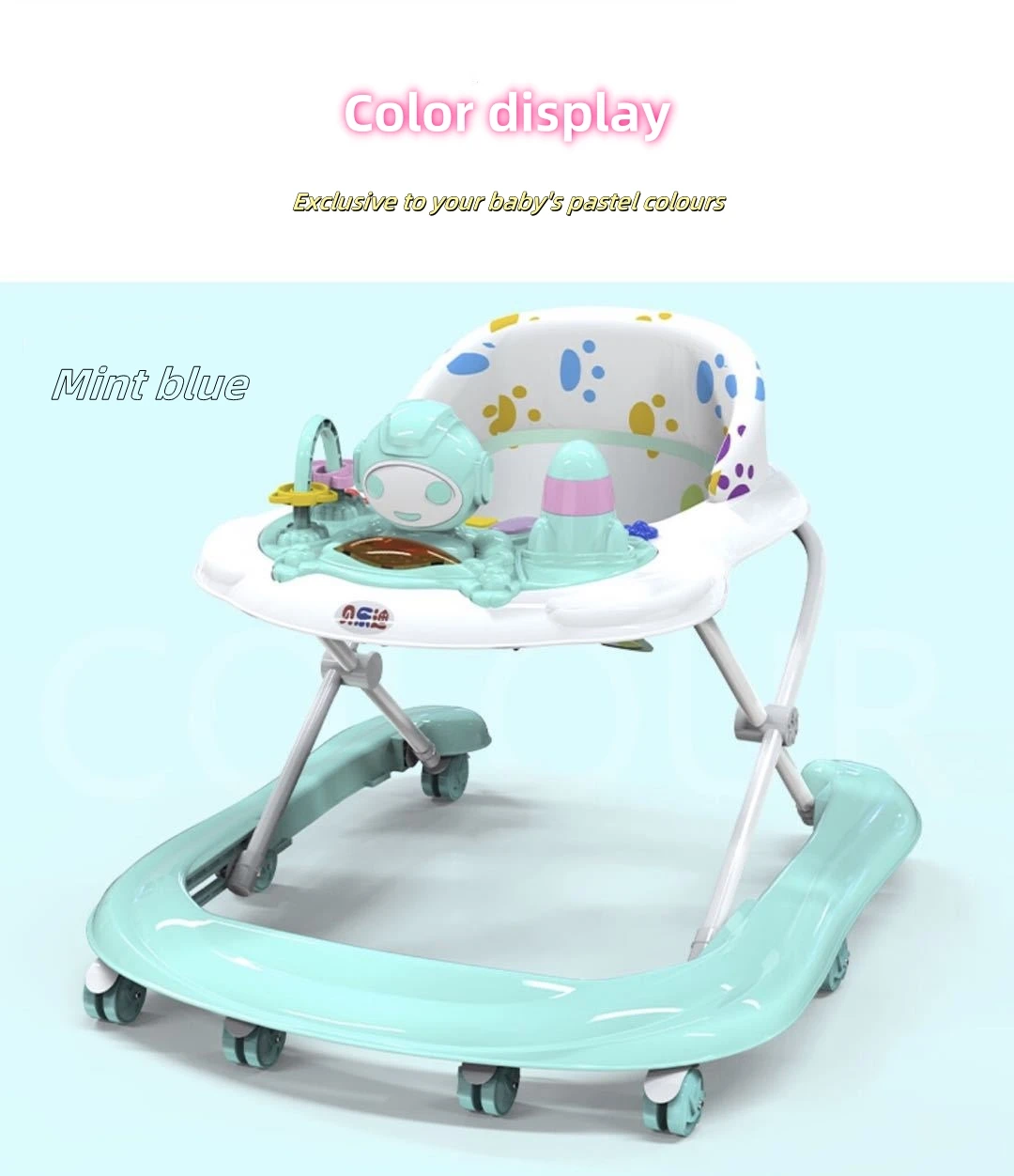 Cartoon Outdoor Baby Activity Walker, 3-in-1 Walking Toy Cart