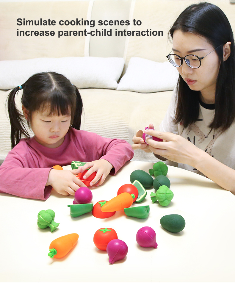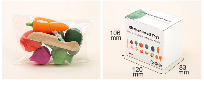 Preschool Wooden Kitchen Food Toys – Silicone Fruit & Veggie Cutting Play Set for Kids