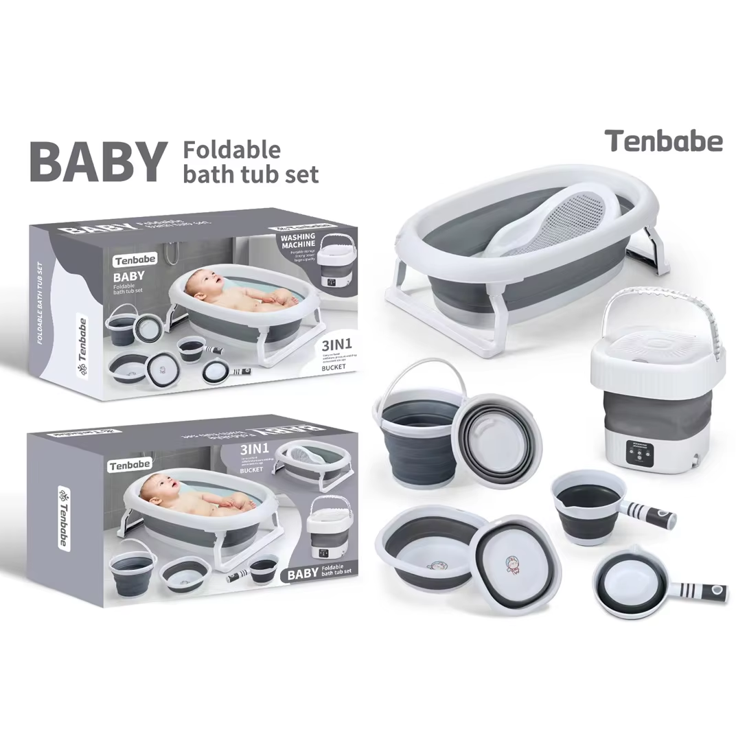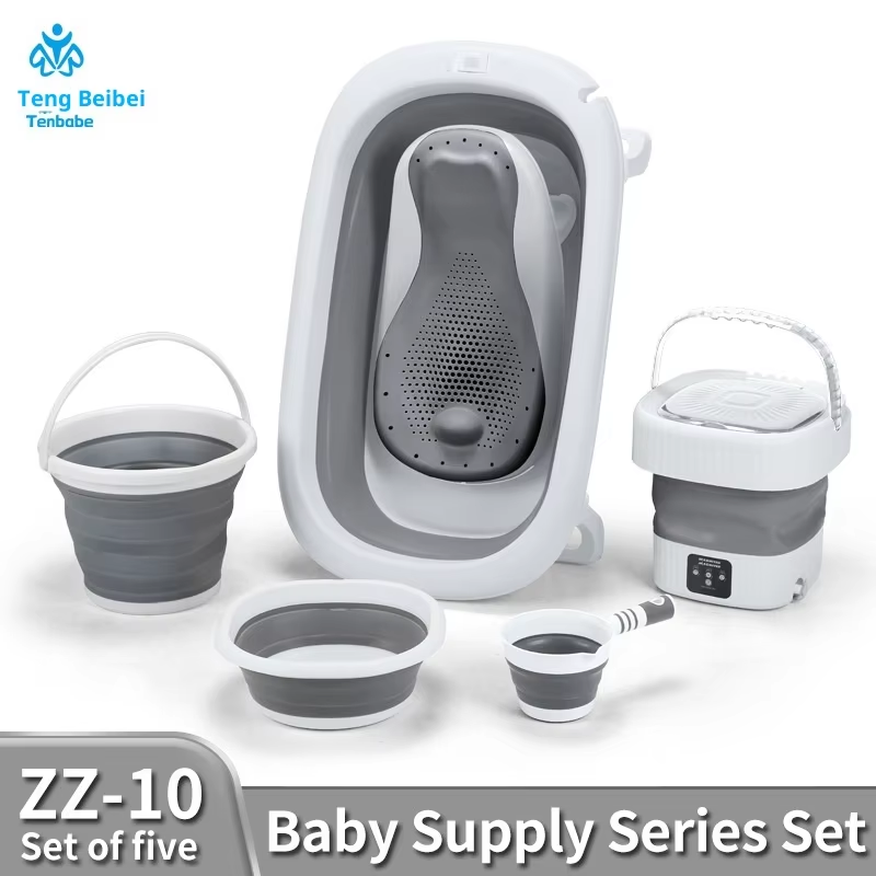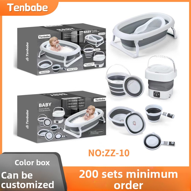 Color Box PP Bathtub Set for 0-8 Years Old Baby Bathing & Clothes Washing Six-Piece Multifunction Gift Set