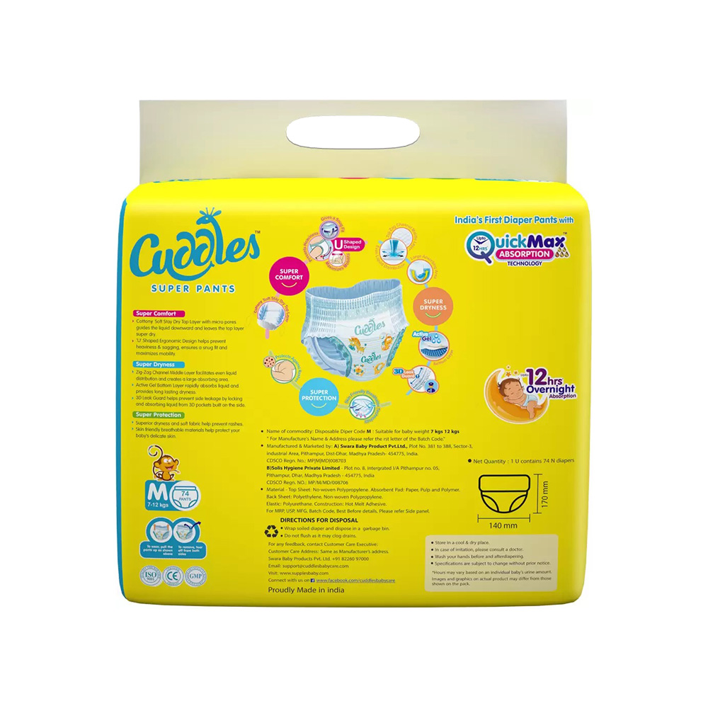Quick Max Absorption technology to provide quick absorption and lonf lasting dryness. The Diaper pants that provide Super Comfort, Super Dryness and Super Protection to the baby.
