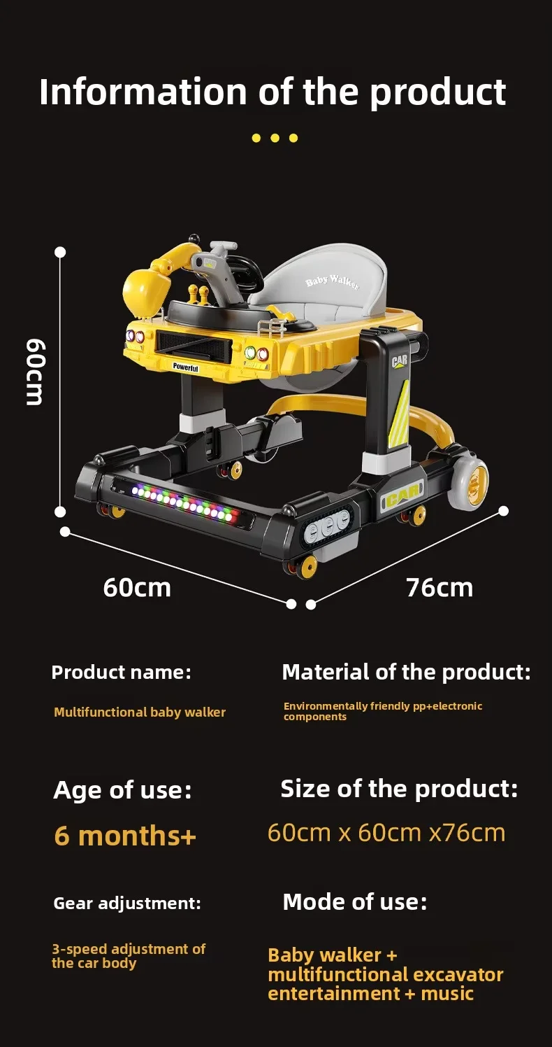 Anti-O-Leg Construction Baby Walker – Multifunctional, Foldable for Ages 6-18 Months