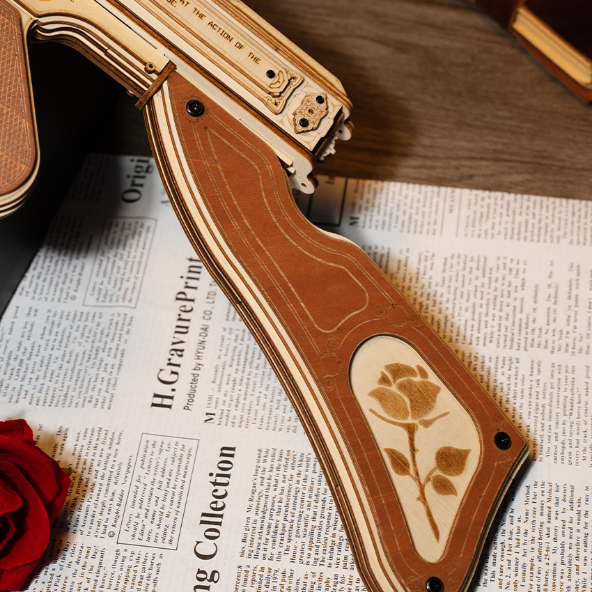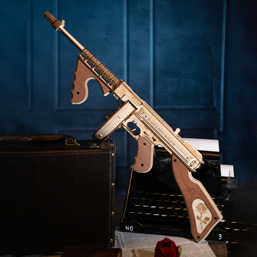 “ROKR Wooden Submachine Gun Model – Adult Collectible Assembly Model Toy”