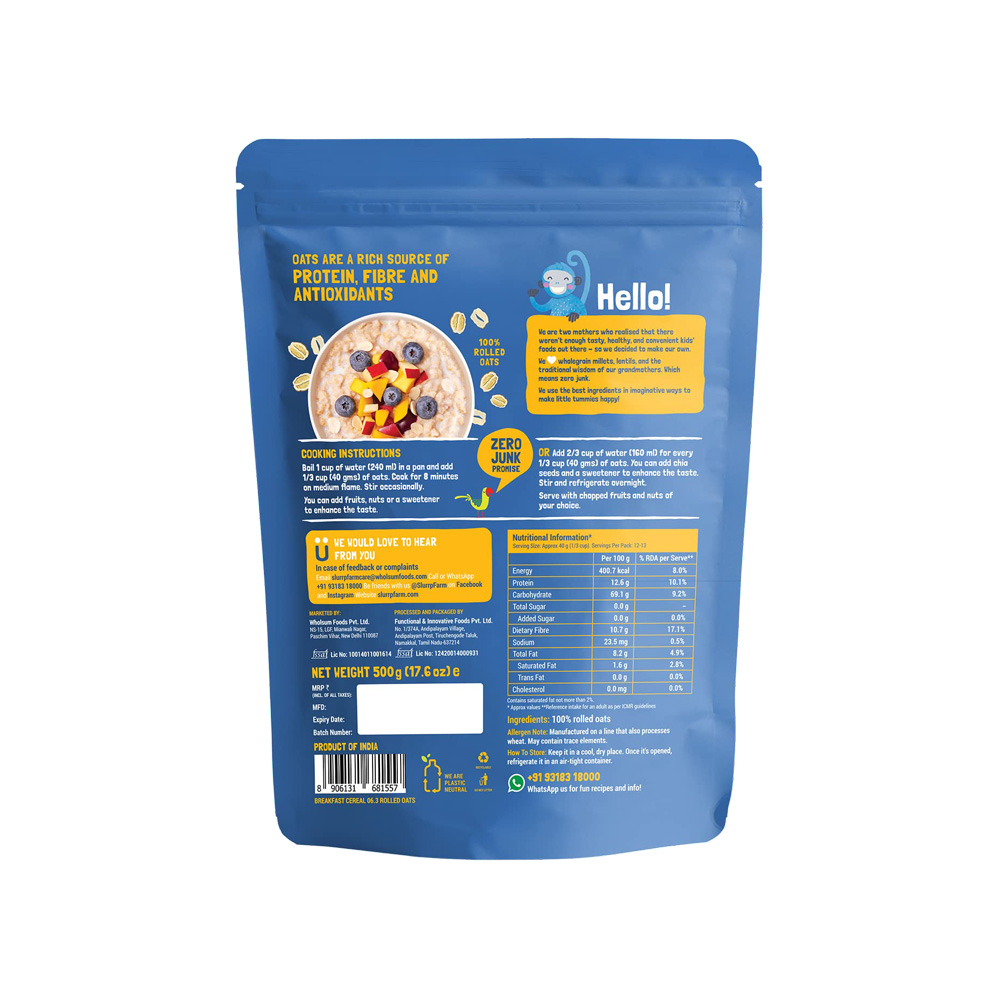 Slurrp Farm Rolled Oats, 100% Natural Wholegrain